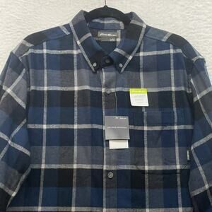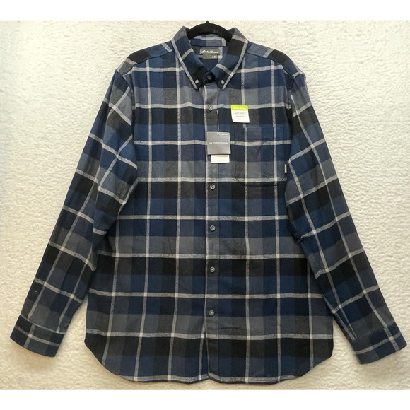 Eddie Bauer Shirt Mens XL Tall Blue Black Plaid Flannel Outdoor Cabin Lumberjack