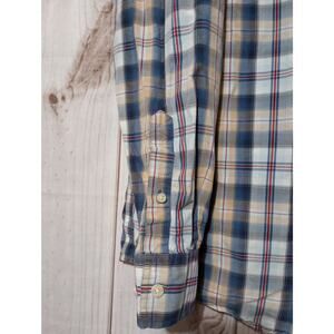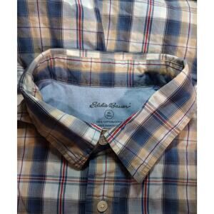 Eddie Bauer Shirt Mens XL Tall Blue Yellow Plaid Button Down Vintage Wash Pocket