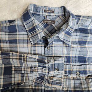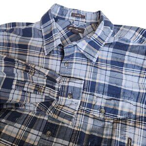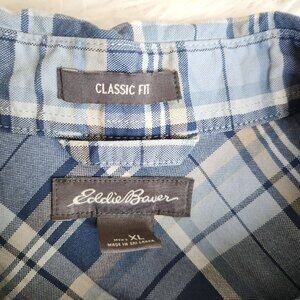 Eddie Bauer Shirt Mens XL TraveX Plaid Button Up Outdoor Blue Pockets Gorpcore