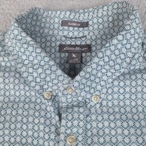 Eddie Bauer Shirt Mens XXL Blue Green Classic Fit Button Down Short Sleeve