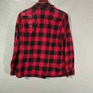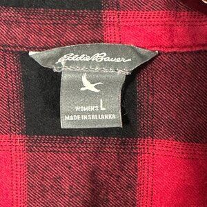 Eddie Bauer Shirt Womens Large Red Flannel Buffalo Plaid Long Sleeve Button Up