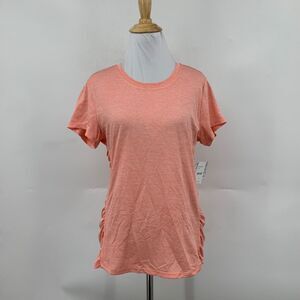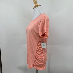 EDDIE BAUER SHIRT WOMENS M MEDIUM PEACH SHIRRING STRETCH PERFORMANCE UPF 50 TEE