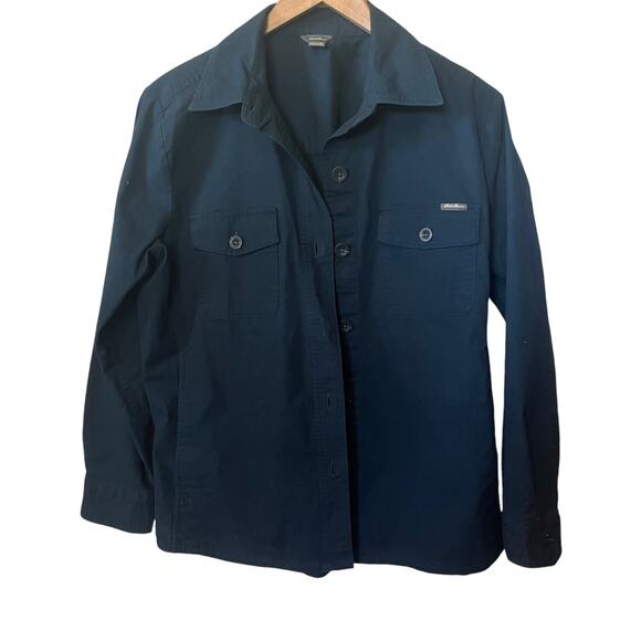 Eddie Bauer Shirt Womens Shacket Cotton Navy Blue Utility Khaki Casual Safari M