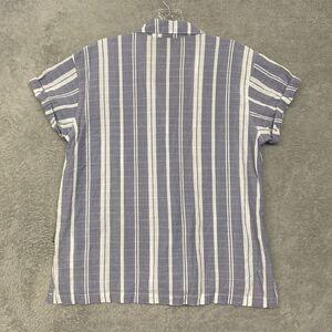 Eddie Bauer Shirt Womens Small Blue Stripe Button Up Cotton Short Sleeve Collar