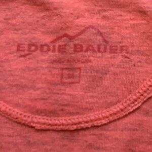 This Eddie Bauer V-Neck Tee Top in size M is a versatile piece for casual wear or athletic activities. Made of lightweight knit polyester fabric, it features a collarless design with cap sleeves and a tagless construction for added comfort. The solid coral peach color adds a pop of brightness, and the tee is suitable for layering or wearing on its own during winter, summer, fall, or spring.