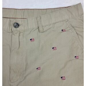 Eddie Bauer Shorts Mens 35 Beige All Over Flag Fourth 4 Of July USA Patriotic