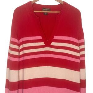 Eddie Bauer Size XL Tall Cotton Pink Striped V-Neck Pullover Sweater