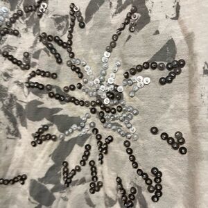 Eddie Bauer Size XL cream colored floral sequin embellished t shirt