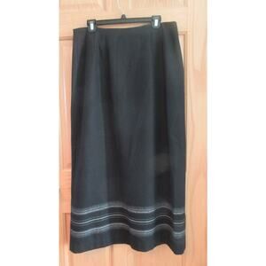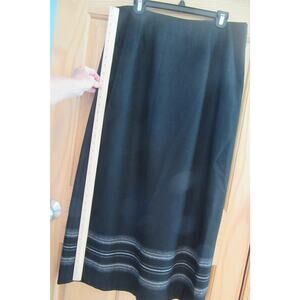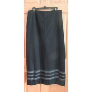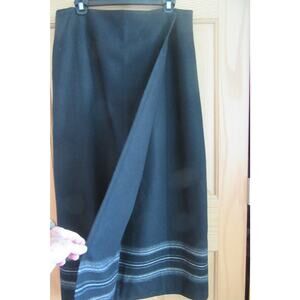 Eddie Bauer Skirt 14 Wraparound Maxi Black 75% Wool Blend Lined with strips on bottom. Measures 36 inches waist to hem and 16.5 inches side to side at waist. No visible hole's rips or stains.