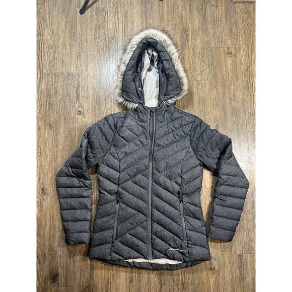 Eddie Bauer Slate Mountain Down Hooded Coat, Gray Heather, Women’s Size XS