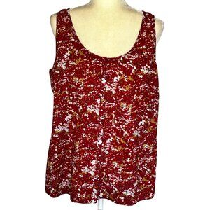 Eddie Bauer Sleevless Top XL 100% Cotton Button Front Pintucking Red Abstract