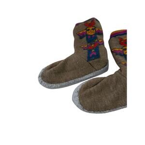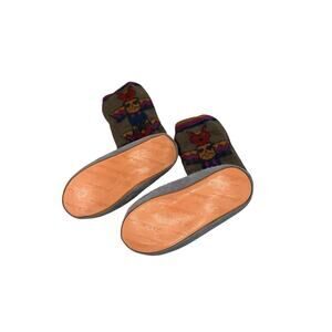 Eddie Bauer Slippers Aztec Print Soft Rubber Bottom Knit Faux Fur Womens L/XL