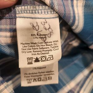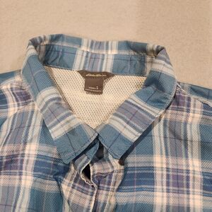 Eddie Bauer Small Blue Plaid Womens Button Up Outdoor Camping Hiking Blouse