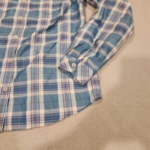 This Eddie Bauer Small Blue Plaid Women's Button-Up Blouse is perfect for outdoor activities like camping and hiking. The classic blue plaid pattern adds a stylish touch to the practical design of the blouse. With a regular fit and button-up style, this top is both comfortable and versatile, making it a must-have for any outdoor enthusiast.