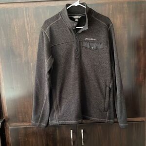 This top is made by Eddie Bauer. It’s a brownish gray color with a snap neckline and a super soft inside. Size medium and in very nice pre owned condition. Smoke and pet free home.