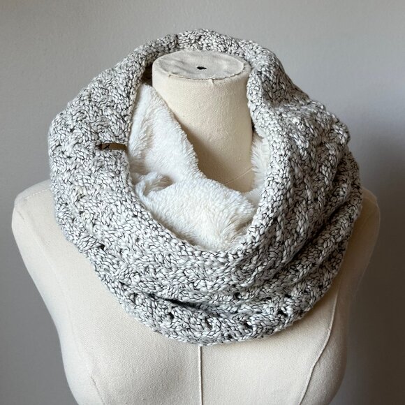 Nearly new Eddie Bauer Snood Scarf with fluffy lining and knit outer! The perfect cozy accessory for fall and winter. Lovely black and white knit that can be styled with many things in your closet!