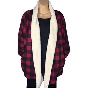 Eddie Bauer Snow Lodge Buffalo Check Faux Shearling Lined Wrap Size Small