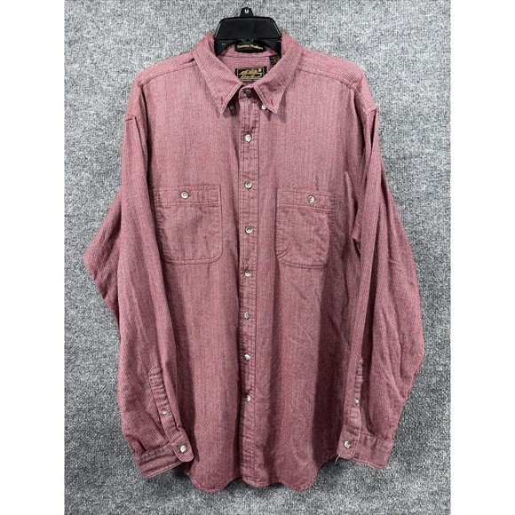 Eddie Bauer Sonoma Heathers Button Down Shirt Men XL Tall Red Flannel 100 Cotton