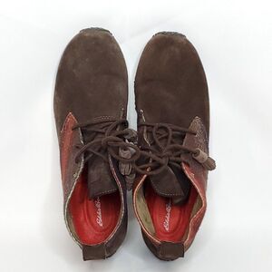 Eddie Bauer Split Suede Chukka Ankle Boot 9 Western Boho Tassels Brown Rust