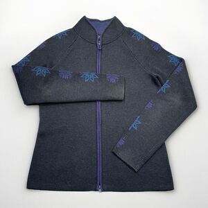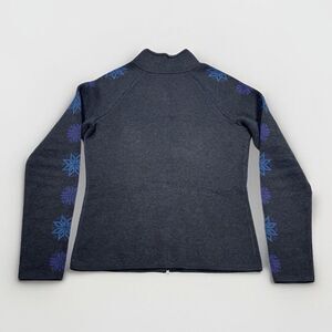 Eddie Bauer Sport Cardigan Sweater Womens S Gray Purple Blue Snowflake Full Zip
