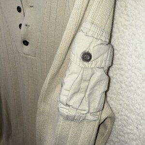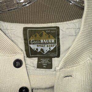 Eddie Bauer Sport Shop Pullover Sweater 1/4 Button XL Tall Shoulder Patch Cream