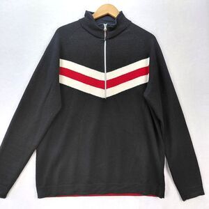Men's Size Large Tall Black 1/4 Zip Merino Wool Nordic Striped Sweater