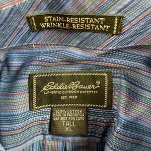 Keywords: Eddie Bauer, button down shirt, dress shirt, striped shirt, men's shirt, long sleeve shirt, stain resistant, wrinkle resistant, casual shirt, office shirt, tall XL, men's fashion, cotton shirt, blue shirt