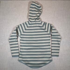 Eddie Bauer Striped Henley Hoodie Fleece Pullover Blue and White/Cream Women's S
