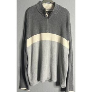 * Title: Eddie Bauer Striped Mens Sweater XL Gray Ivory 1/4 Zip Mock Neck Pullover Dad