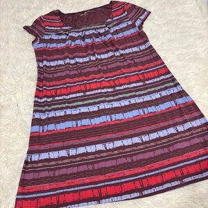Eddie Bauer Striped Scoop Neck Shift Dress Women's Stretch Short Sleeves XL