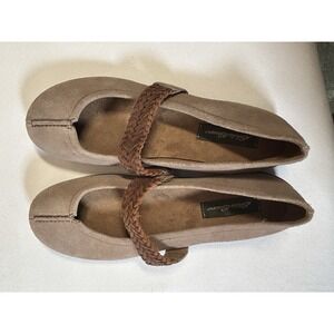 Eddie Bauer Suede Leather Flats Braided Strap Delight Pine Taupe Mary Jane Sz