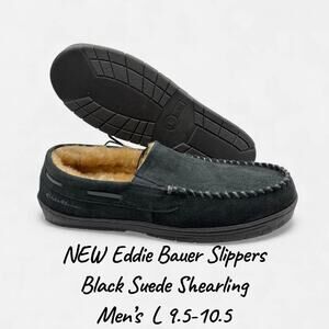 Eddie Bauer Suede Shearling Slippers Mens L US 9.5-10.5 Moccasins