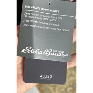 NWT Eddie Bauer Women Sun Valley Down Jacket Parka Black Color Fur Removable Hood XL