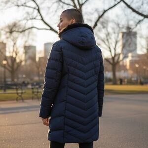 This stunning navy blue puffer was originally chosen for the infamous cold of Montana winters—ironically, it’s never been worn (tags removed), because those chilly days never truly arrived in our capital city. The MSRP is $299.