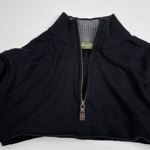 Eddie Bauer Sweater 1/4 Zip Black Cotton Cashmere Office Career Outdoor Gorp