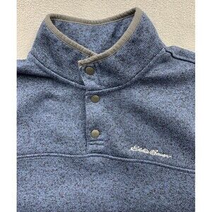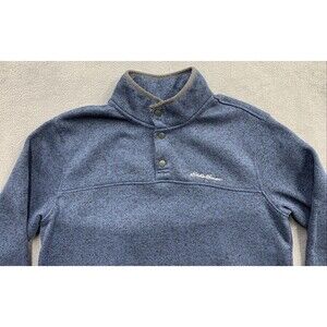 Eddie Bauer Sweater Adult Men Large Dark Blue Fleece Henley Pullover Snap Button