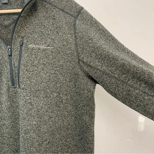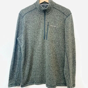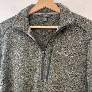 Eddie Bauer Sweater Men Medium 1/4 Zip Long Sleeve Green Gray Pocket Logo Work
