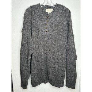 Eddie Bauer Sweater Mens Extra Large Gray Chunky Cable Knit Fisherman Henley XL