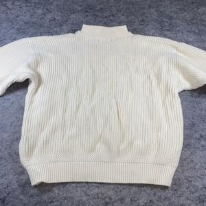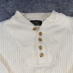 Eddie Bauer Sweater Mens L Cream Cotton Long Sleeve Fisherman Henley Knit Heavy