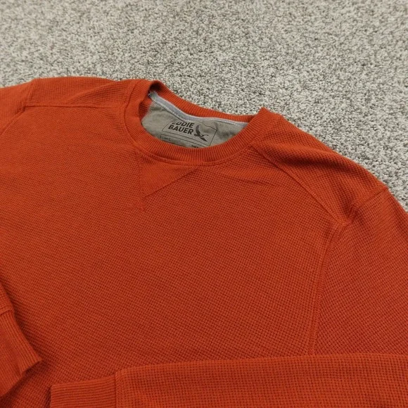 Eddie Bauer Sweater Mens L Orange Waffle Knit Thermal Crewneck Pullover Hiking