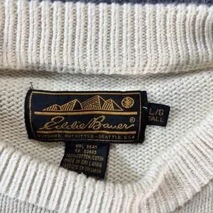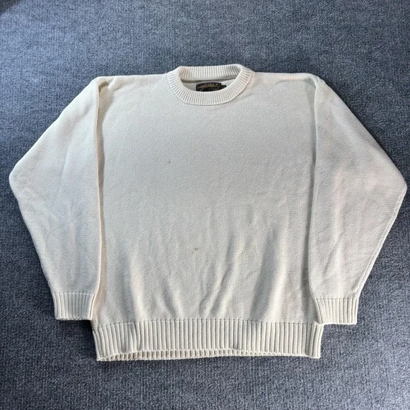 Eddie Bauer Sweater Mens LT White Cotton Knit Crewneck Pullover Big Tall Casual