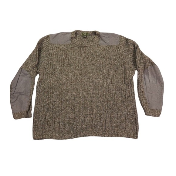 Eddie Bauer Sweater Mens Large Brown Pullover Military Crew Neck Elbow Patches