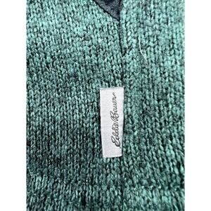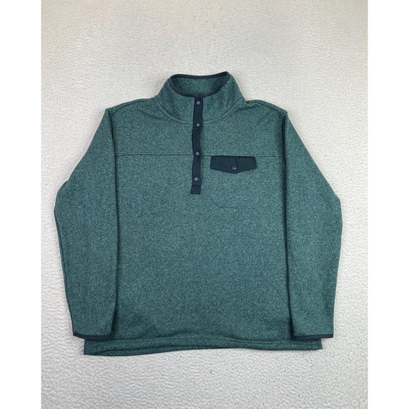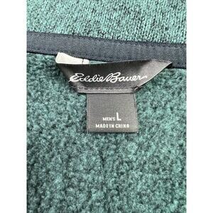 Eddie Bauer Sweater Mens Large Green Polyester Fleece Mock Neck Pullover