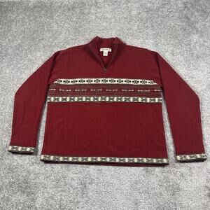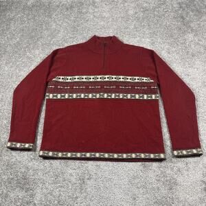 Eddie Bauer Sweater Mens Large Lamsbwool Fair Isle Vintage Grandpa 1/4 Zip