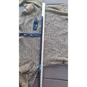 The Eddie Bauer Men's Large Quarter Zip Pullover Sweater is a cozy and stylish outdoor piece made from thick fleece knit fabric. This classic pullover features a solid gray color with a mock neck and long sleeves, perfect for casual occasions. The sweater also includes a 1/4 zip accent, adding a touch of functionality to its preppy design. Whether you're hitting the trails or just running errands, this Eddie Bauer sweater is a must-have for any man's wardrobe.