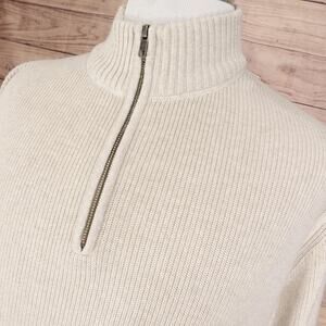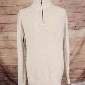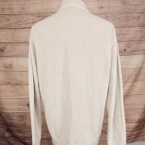 Eddie Bauer Sweater Mens Large Tall LT Beige 1/4 Zip Cotton Rib Knit Pullover