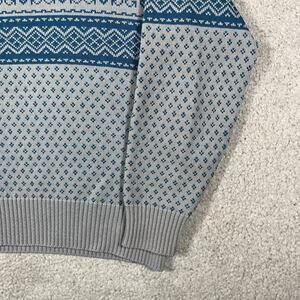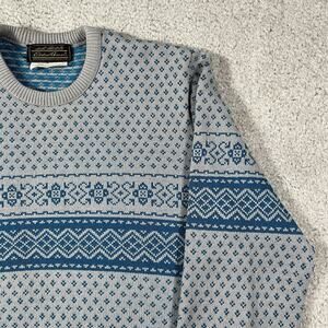 Eddie Bauer Sweater Mens M Gray Blue Wool Fair Isle Nordic Made USA Knit