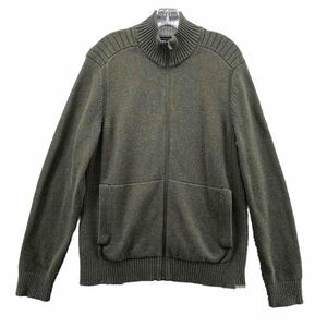 For sale is a used - Eddie Bauer Sweater Mens Medium Military Green Cardigan Knit Full Zip Dad Casual