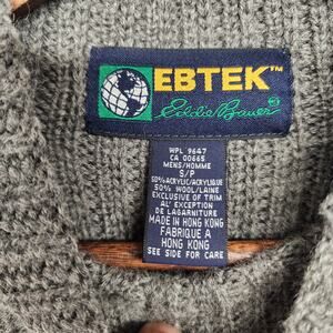 Eddie Bauer Sweater Mens Small EBTEK Wool Blend Grey Black Vintage Hong Kong 90s
