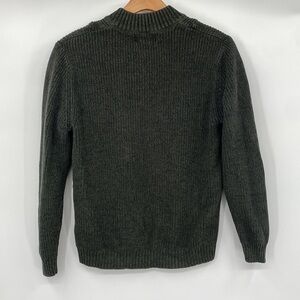 Eddie Bauer Sweater Mens Small Green Knit Henley Outdoor Pullover. Ribbed knit. Crew neck with button closure. 100% Cotton. Pre-owned condition. There is a small hole right next to one of the button holes. Please see photos